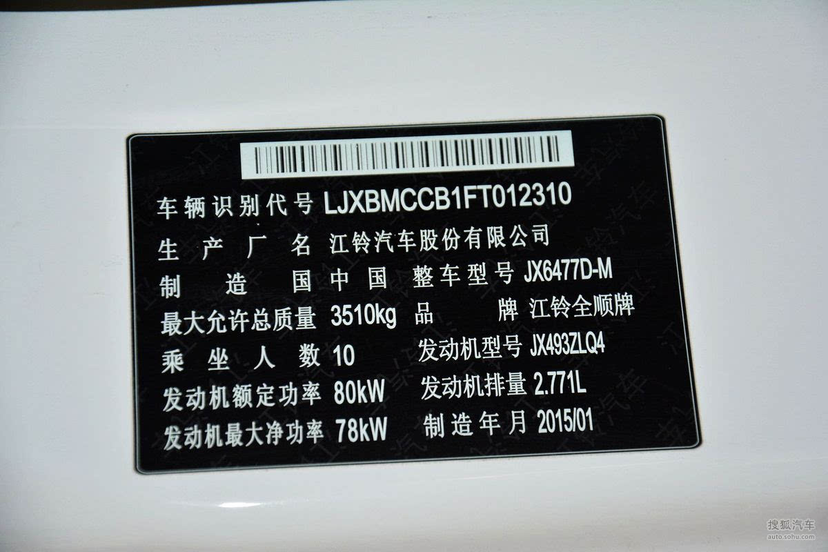 2015款 柴油 短轴 物流型 中顶 6座 国4