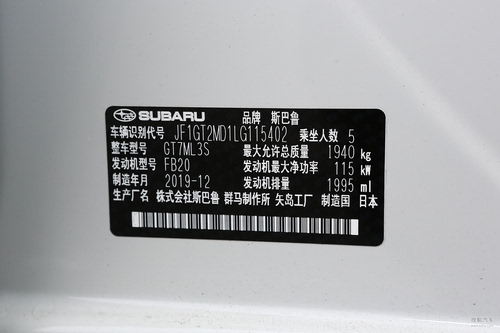 2019款 2.0i 全驱豪华版EyeSight 国VI