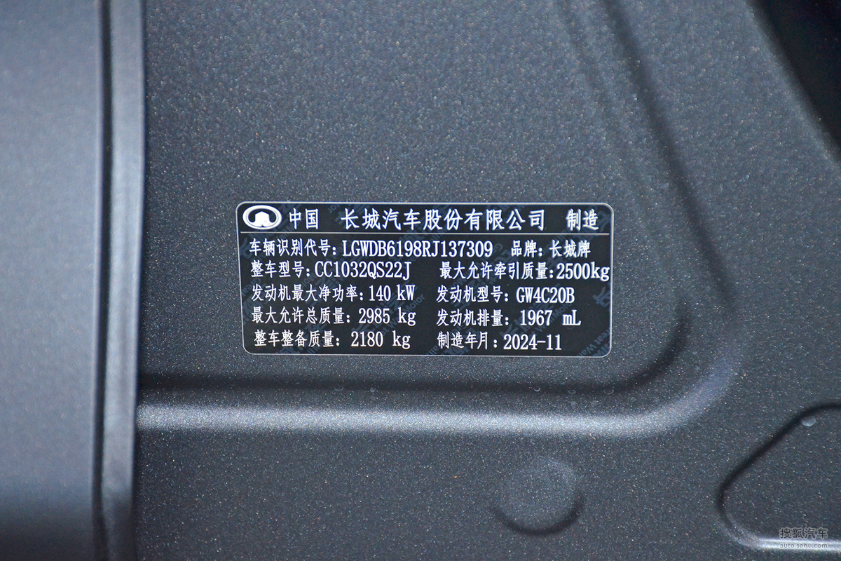 - 2020款 2.0T越野版自动汽油四驱高阶版GW4C20B