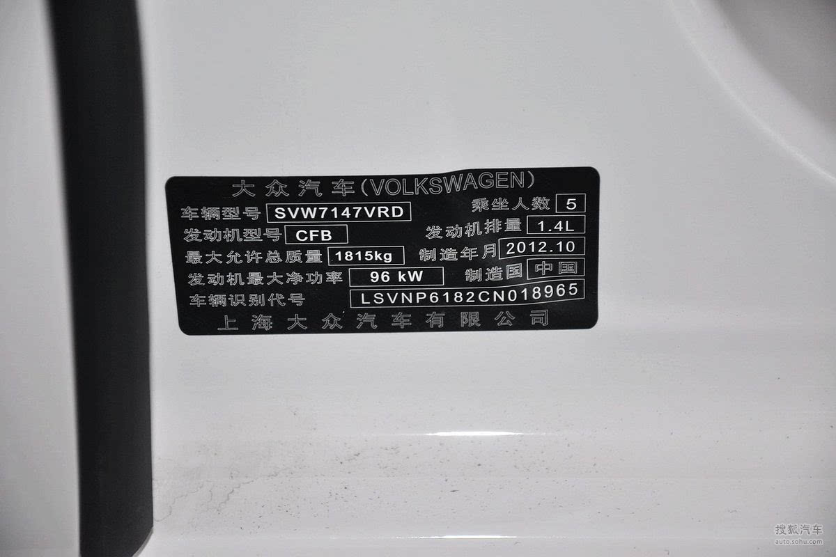 - 2013款 改款 1.4TSI 手动豪华版