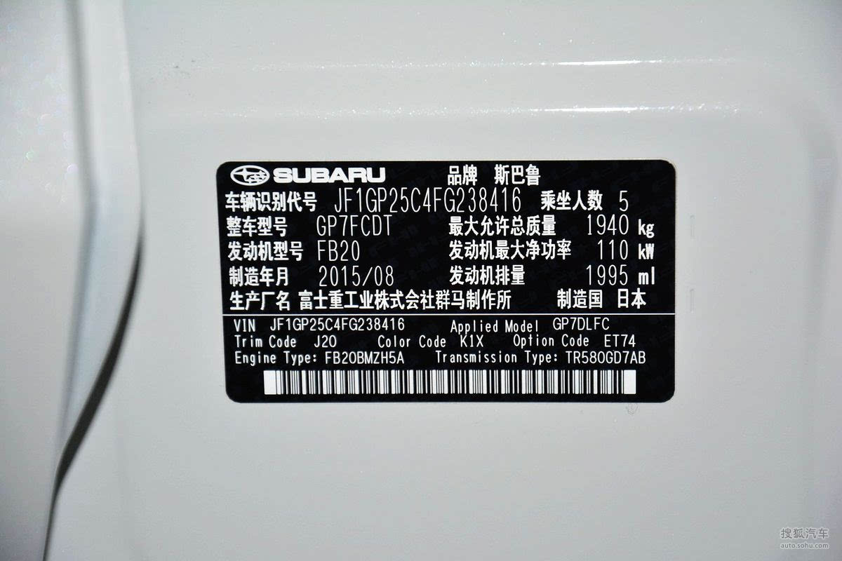 - 2020款 改款 2.0i 全驱豪华版EyeSight